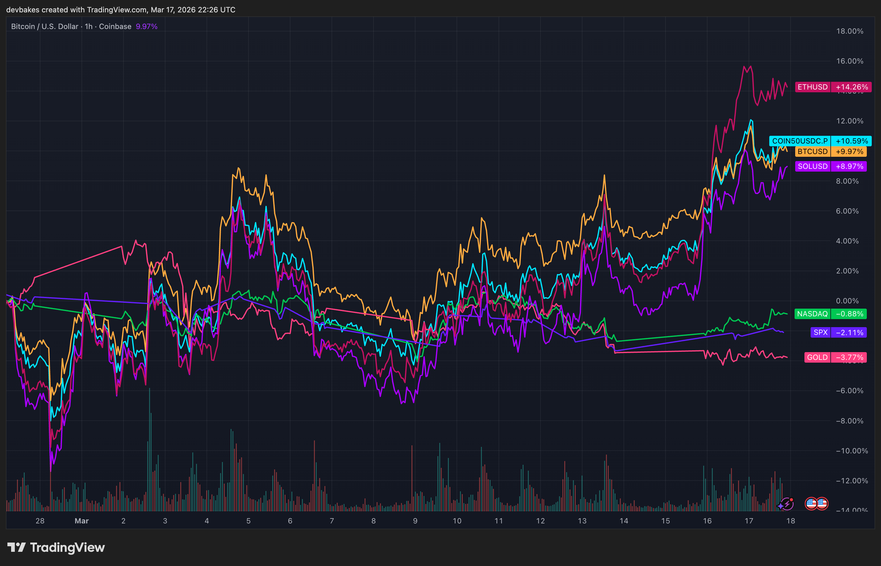 Crypto has materially outperformed since the war broke out.