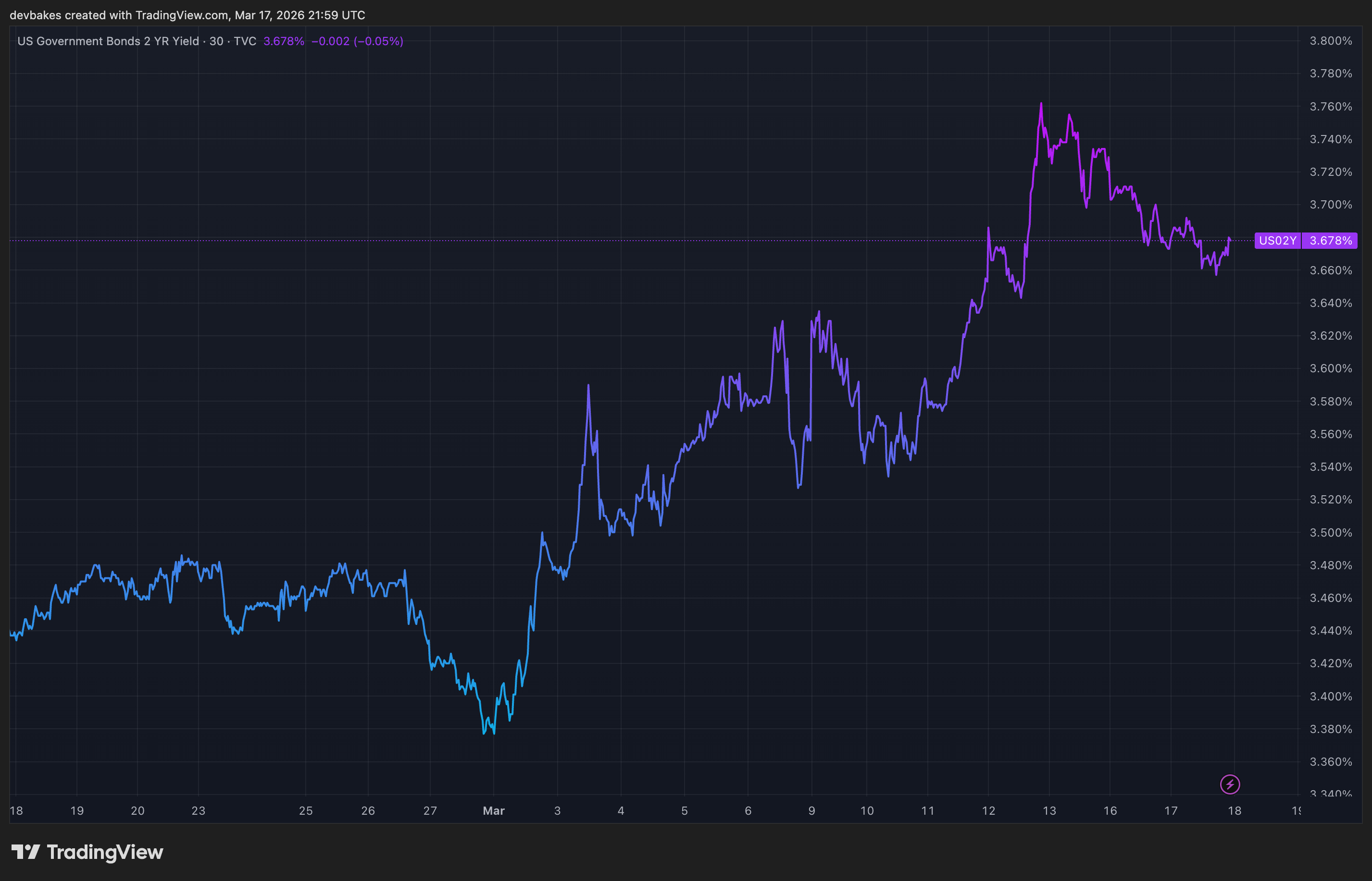 Treasury yields climbing: 2-year & 10-year treasury yields are ~+300bps & ~+250bps since initial strikes.