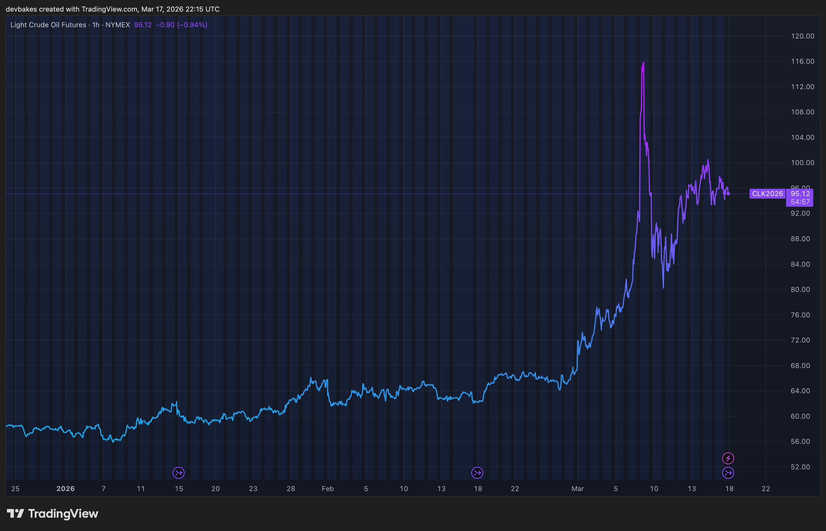 That said, the US is more resilient than the rest of the world: The US is more isolated from these shocks, as our domestic oil production is robust. We’re more isolated, but not impervious. Polymarket odds of a recession have climbed noticeably.